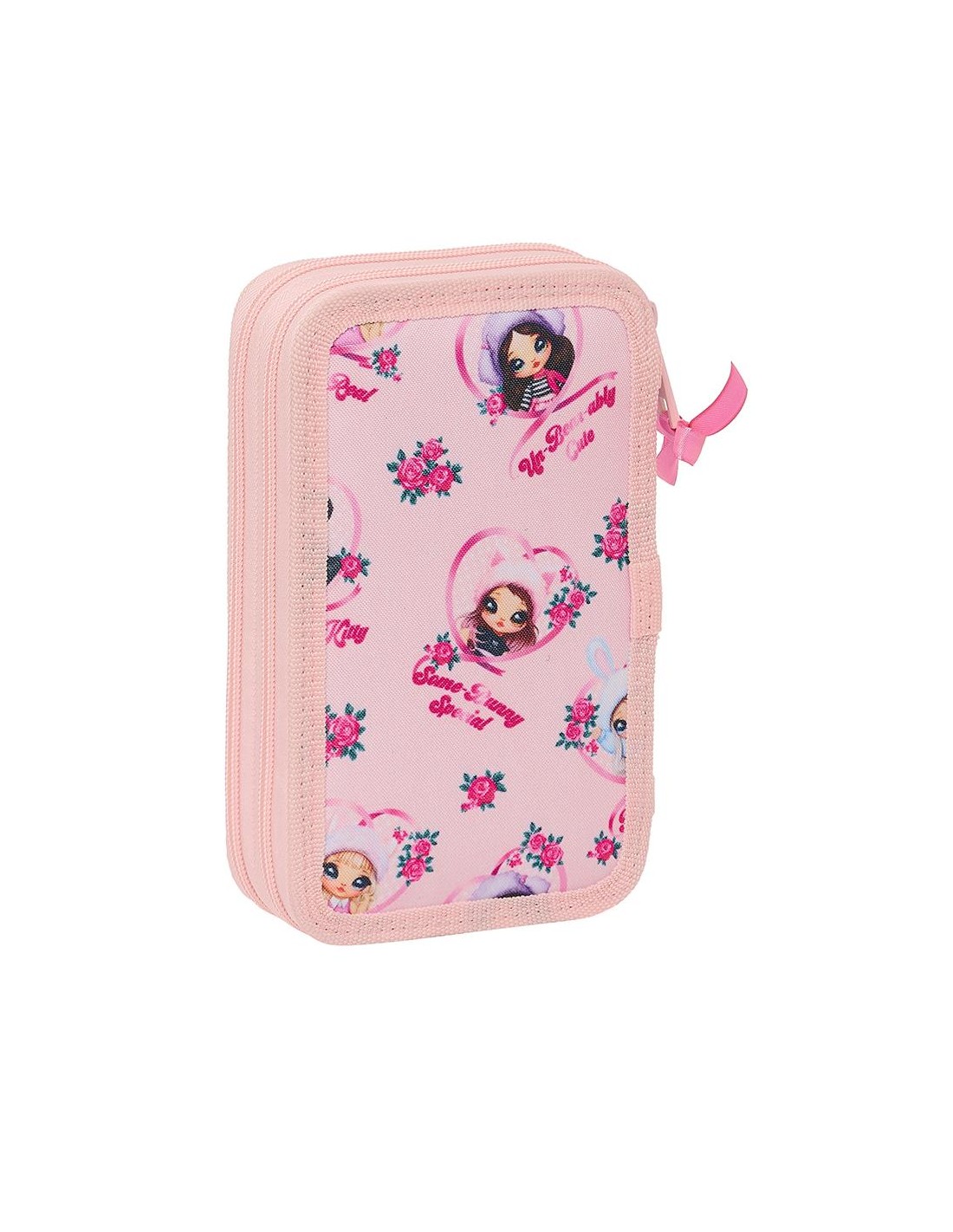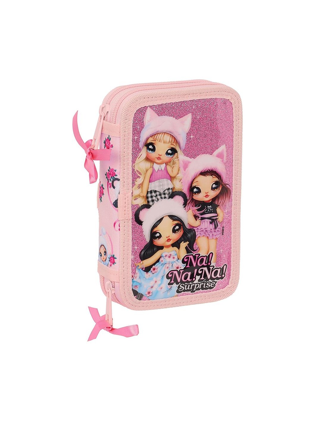 Tamaño: 12,5x4x19,5cm. Contiene 28 piezas : goma, lápiz de grafito, bolígrafo azul, y sacapuntas (primer compartimento), 10 colorines de madera, y 14 rotuladores de colores segundo compartimento).