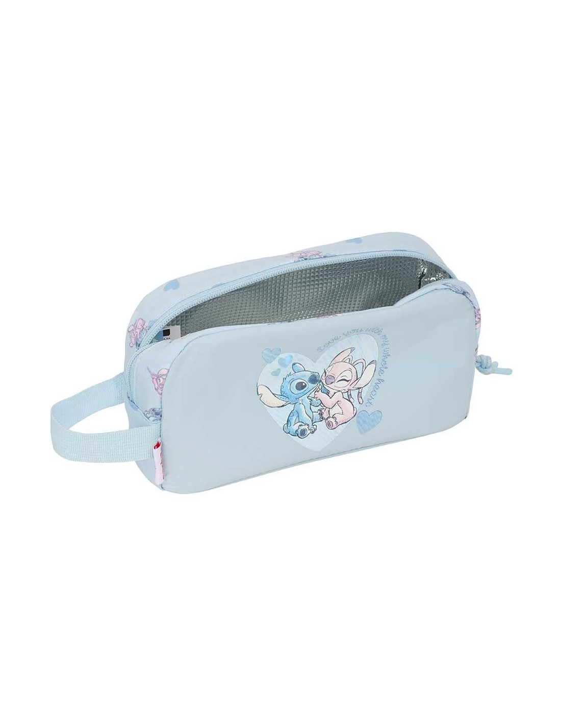 Tamaño 21,5x6,5x12 cm Interior forrado de alumínio para mantener frio-calor. Asa de mano en la parte lateral. Compartimento con cremallera.