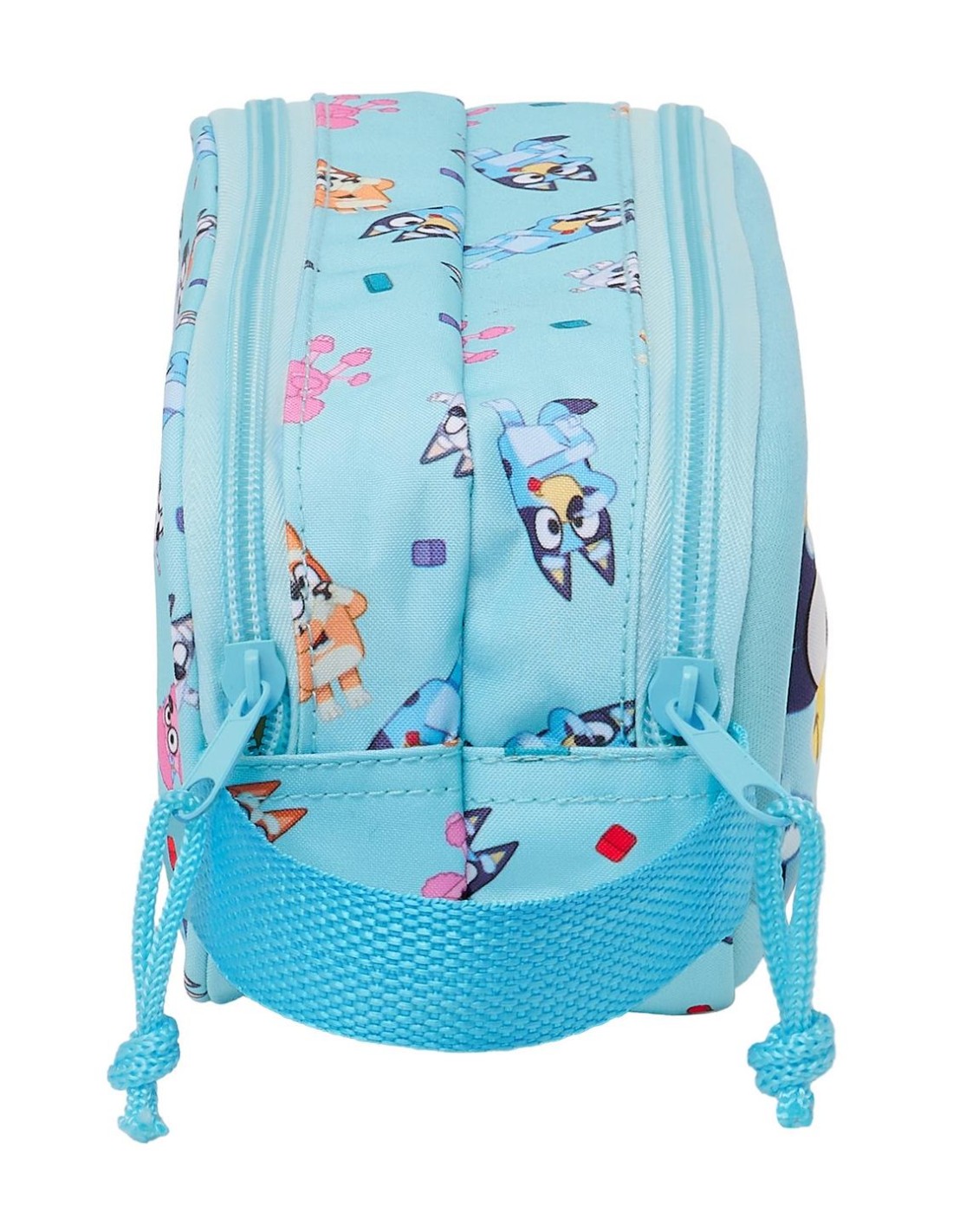 Tamaño: 21x6x8cm. Dos compartimentos separados con cremalleras. Asa de mano en la parte lateral.