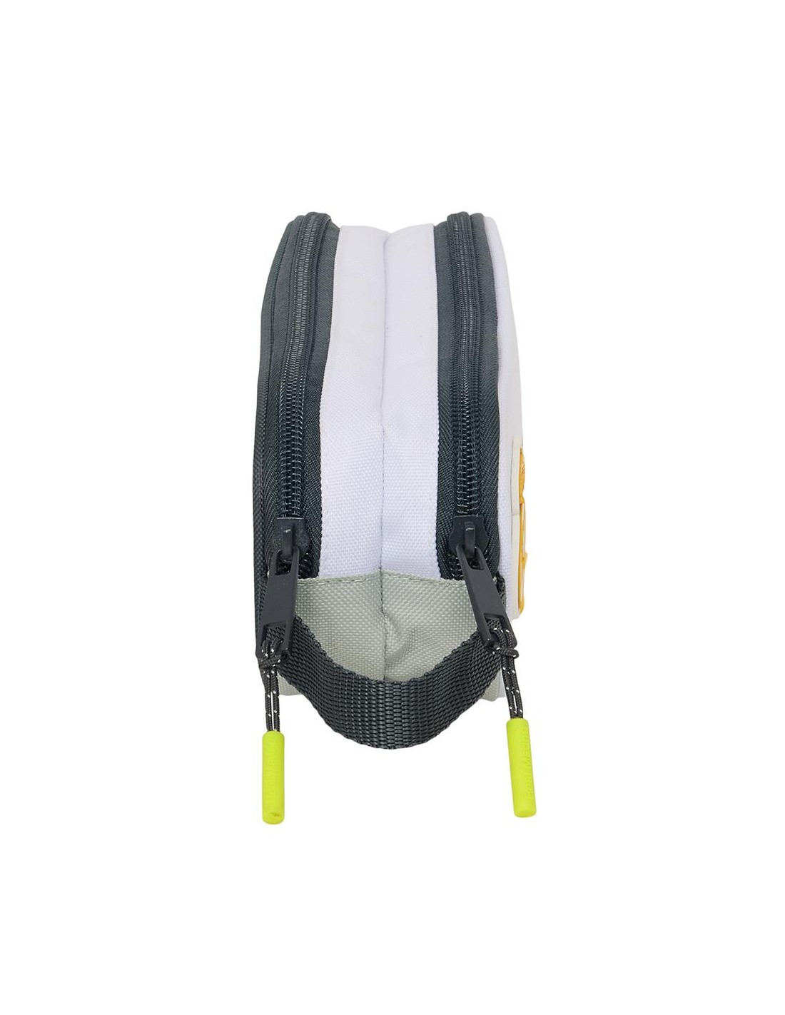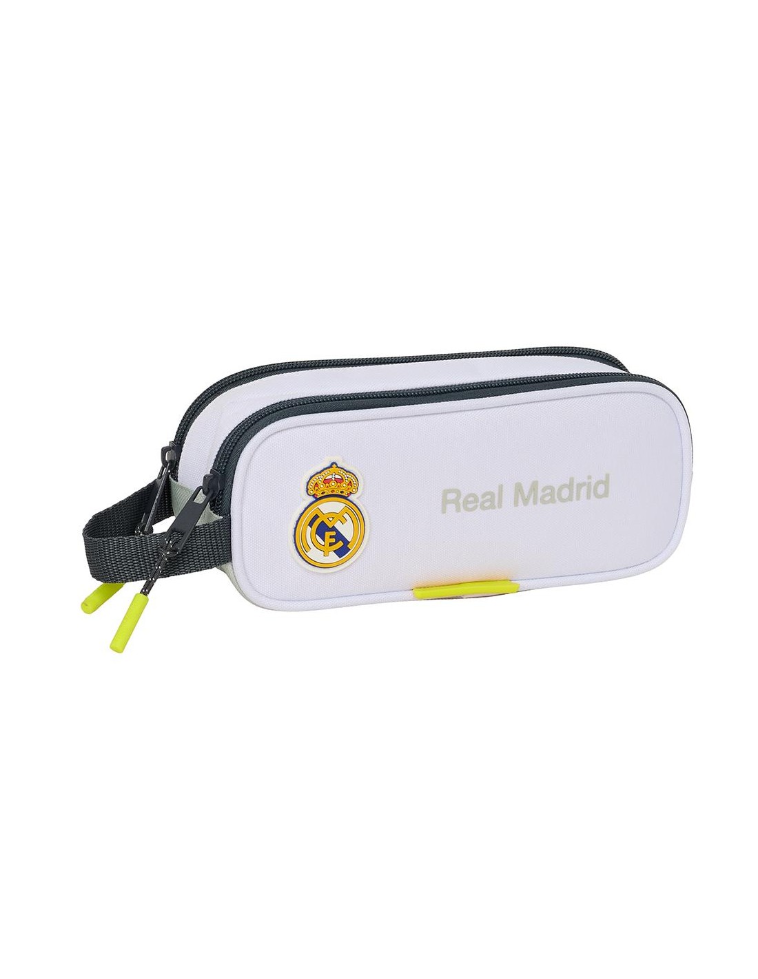 Tamaño: 21x6x8cm. Dos compartimentos separados con cremalleras. Asa de mano en la parte lateral.