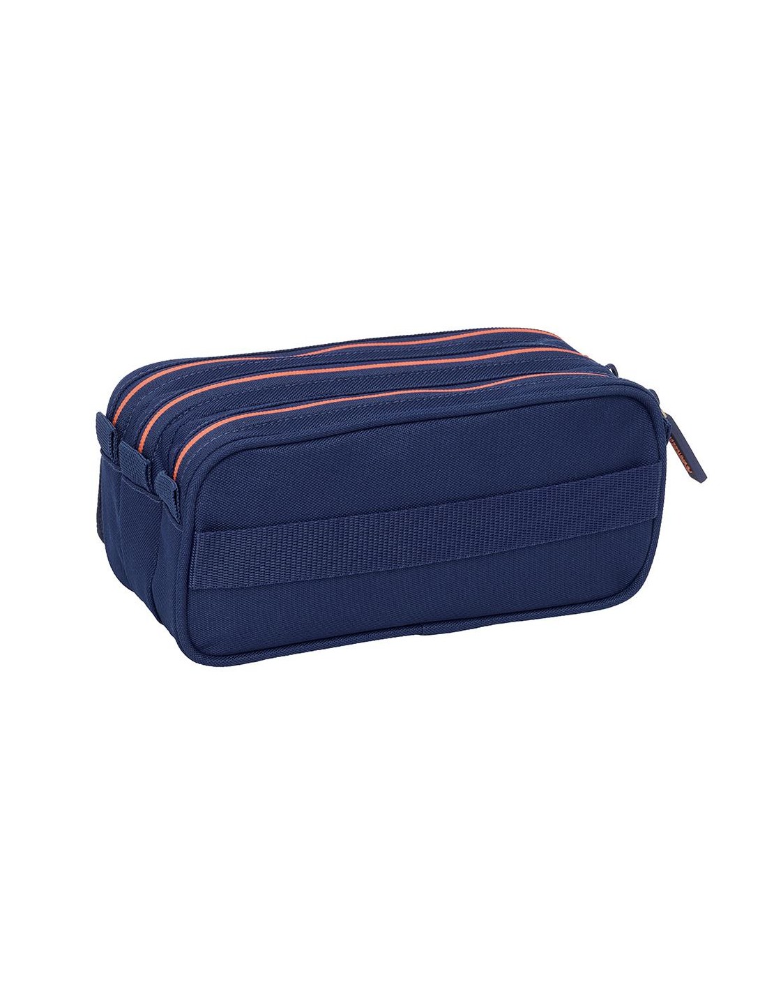 Tamaño: 21,5x10x8cm. Con tres compartimentos separados con cremalleras. Asa de mano en la parte lateral. Bolsillo frontal con cremallera. Cinta trasera adaptable a carro portamochilas.