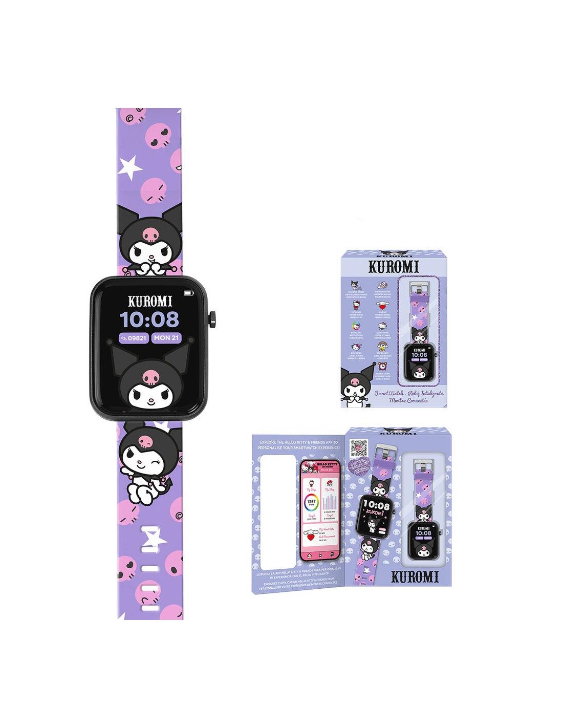 Edad: +3 años. Tamaño: 12x8x8cm. Reloj inteligente oficial de Kuromi con cámara selfie, grabadora de voz, alarma, cronómetro y calculadora. Divertida cámara para selfie y video: descarga tus increíbles fotos y videos,¡comparte estos momentos invaluables con amigos y familiares de manera confiable y segura! Batería de larga duración, que permite una diversión ininterrumpida durante el día y la noche. Cable USB incluido (carga 1 hora antes de usar).