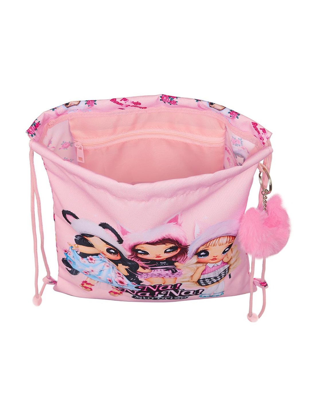 Tamaño: 26x34cm. Bolsillo interior con cremallera. Cierre de seguridad anti-estrangulamiento. Cierre mediante cordones.