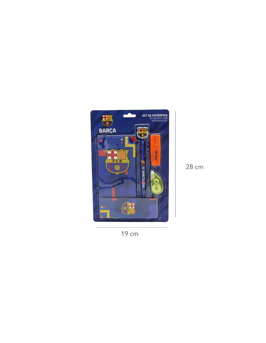 SETS DE PAPELERIA Set papeleria Barcelona 5 piezas 332508339 €3.95 CARACTERÍSTICAS: Los diferentes artículos de este set cuentan con el escudo y los colores del Barça. Contiene 2 lápices, 2 gomas de borrar y un sacapuntas. Add to cart