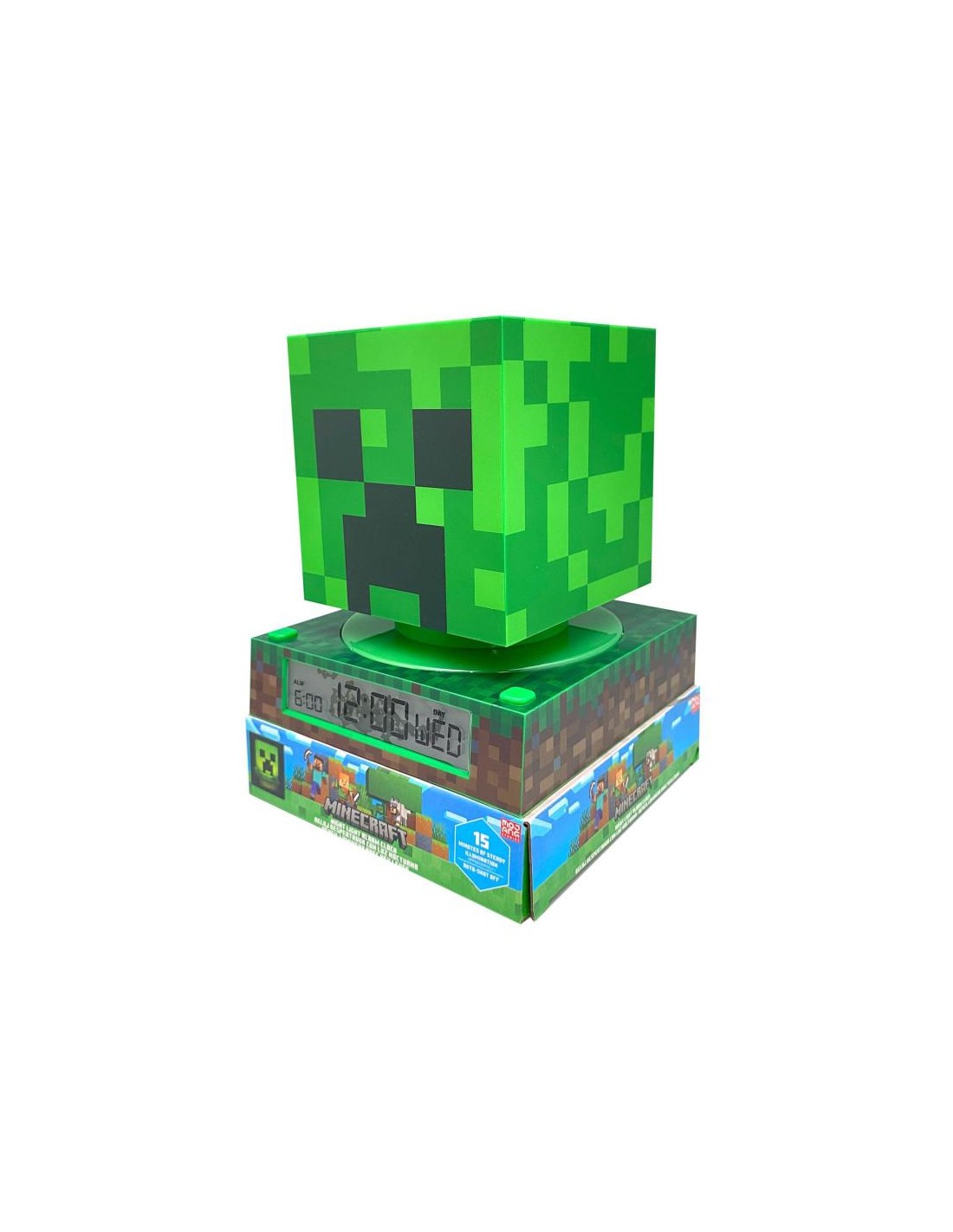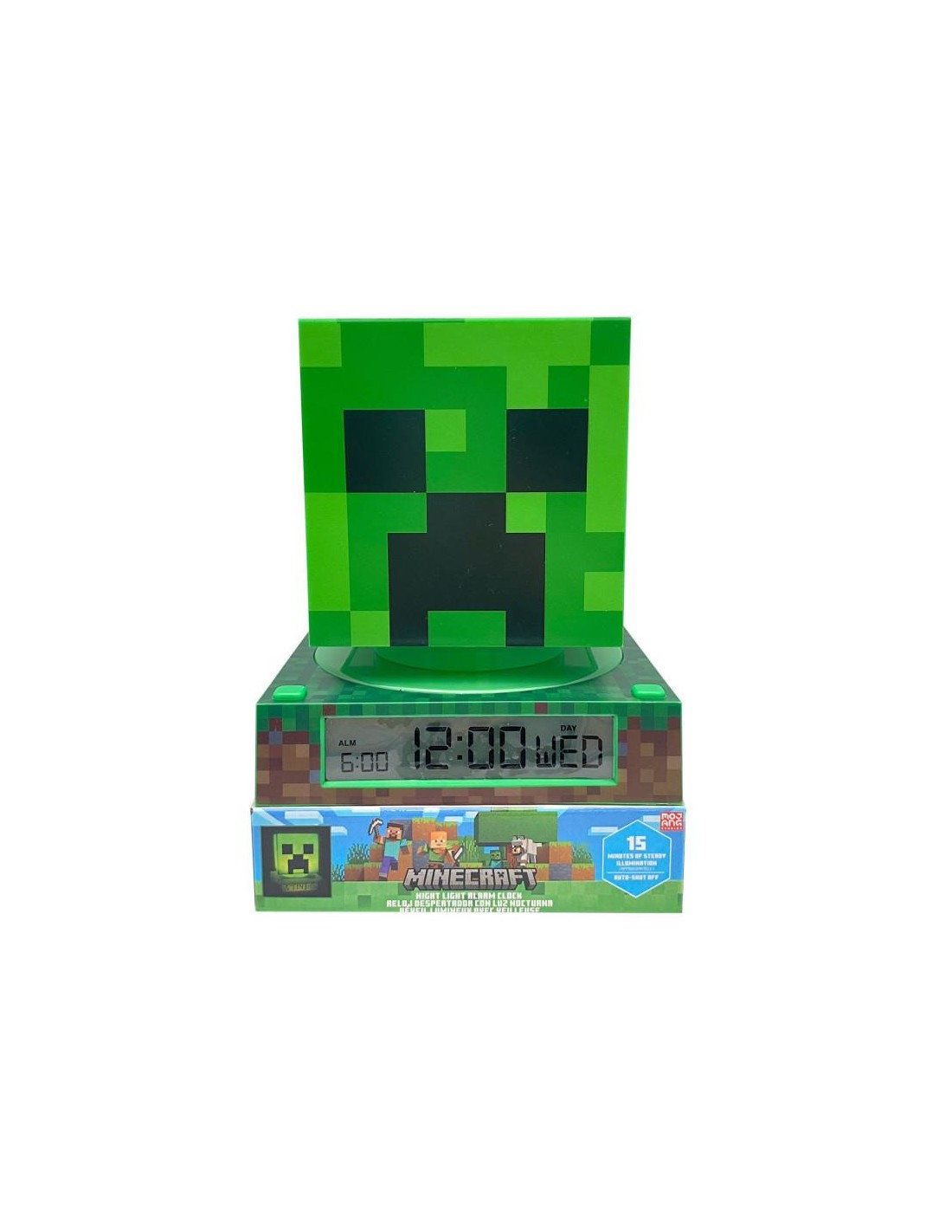 Tamaño: 13x13x15cm. Añade a tu colección esta divertida Lámpara 3D con la forma de un personaje de Minecraft, que incluye funciones de despertador, fecha y hora. Mejora tu ambiente sustituyendo tu clásica lámpara por esta figura 3D para dar a tu espacio un toque más encantador. ¡Es perfecta para exponerla en mesitas de noche o en estanterías! Una vez que presiones el botón, la luz permanecerá encendida durante aproximadamente 10 minutos. Además, con sus funciones adicionales de despertador, visualización de la hora y calendario, esta lámpara no solo iluminará tu habitación, sino que también te ayudará a mantenerte organizado y puntual.