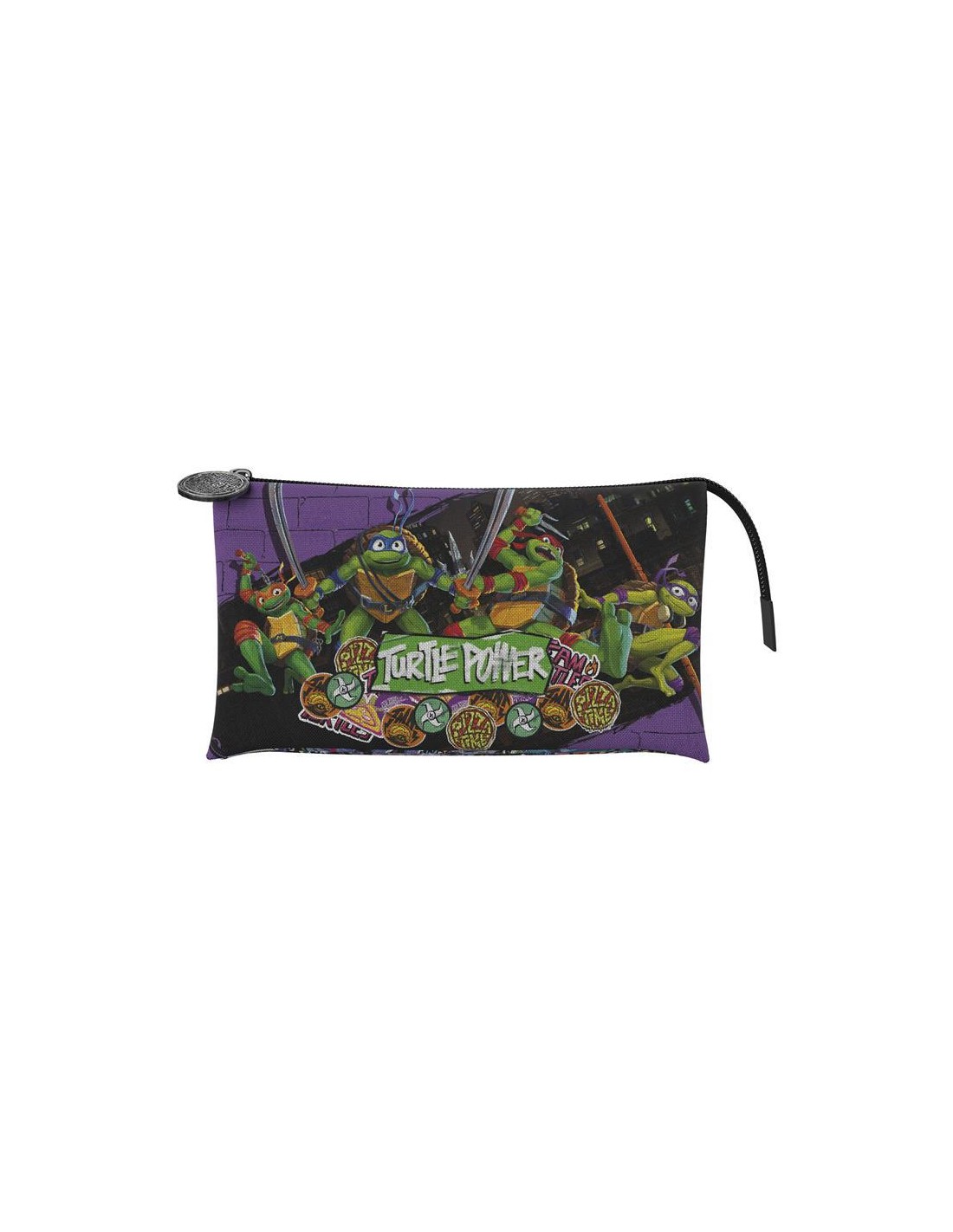 TORTUGAS NINJA: Este estuche de Tortugas Ninja es imprescindible para completar tu mochila escolar en primaria, secundaria o en la universidad.Medidas:23x3x12.5cm CARACTERÍSTICAS: Cuenta con tres amplios compartimentos donde llevarás tu material bien organizado y dos más pequeños ideales para llevar tus cromos, cartas o notas. Tirador metálico de gran resistencia para marcar estilo.