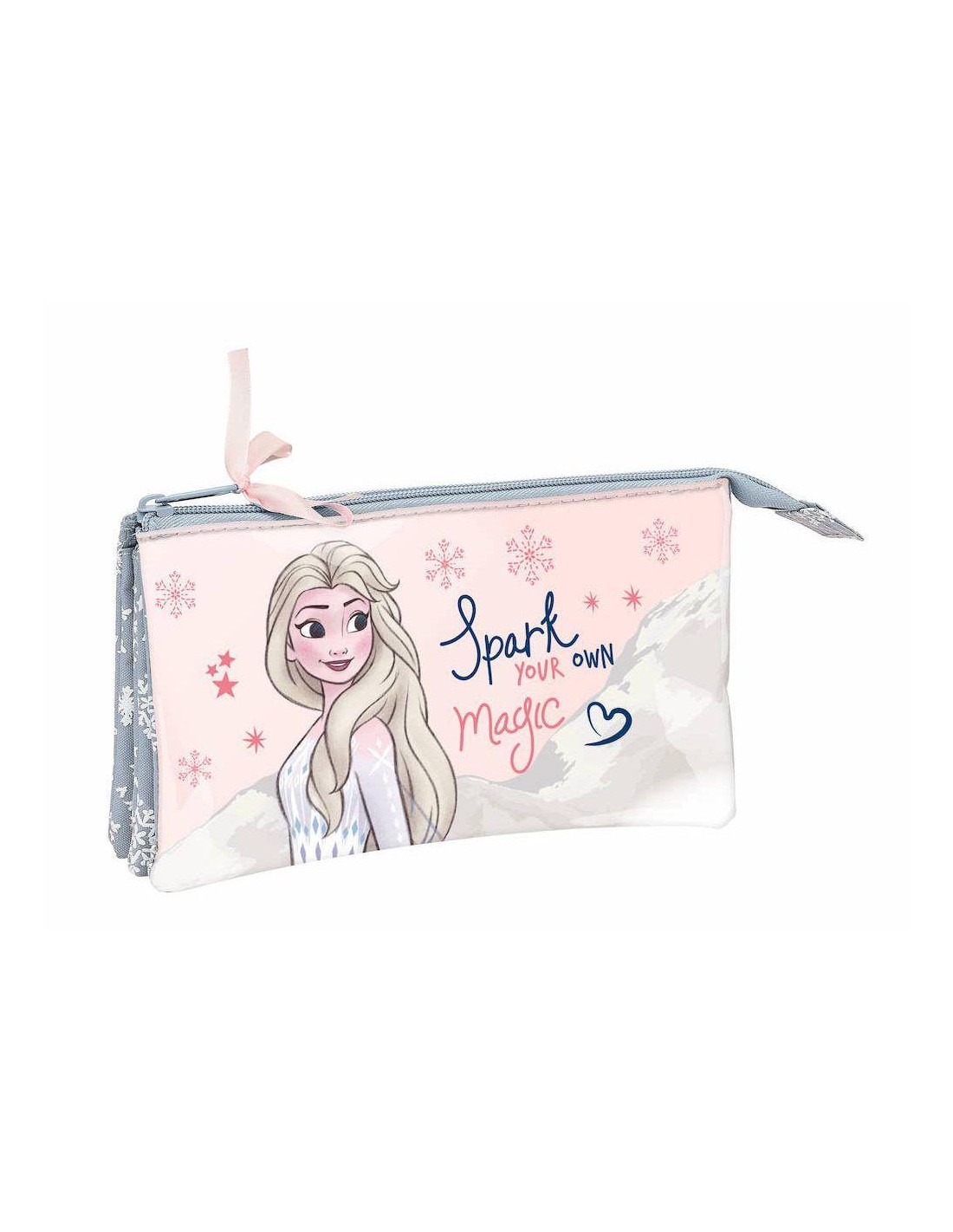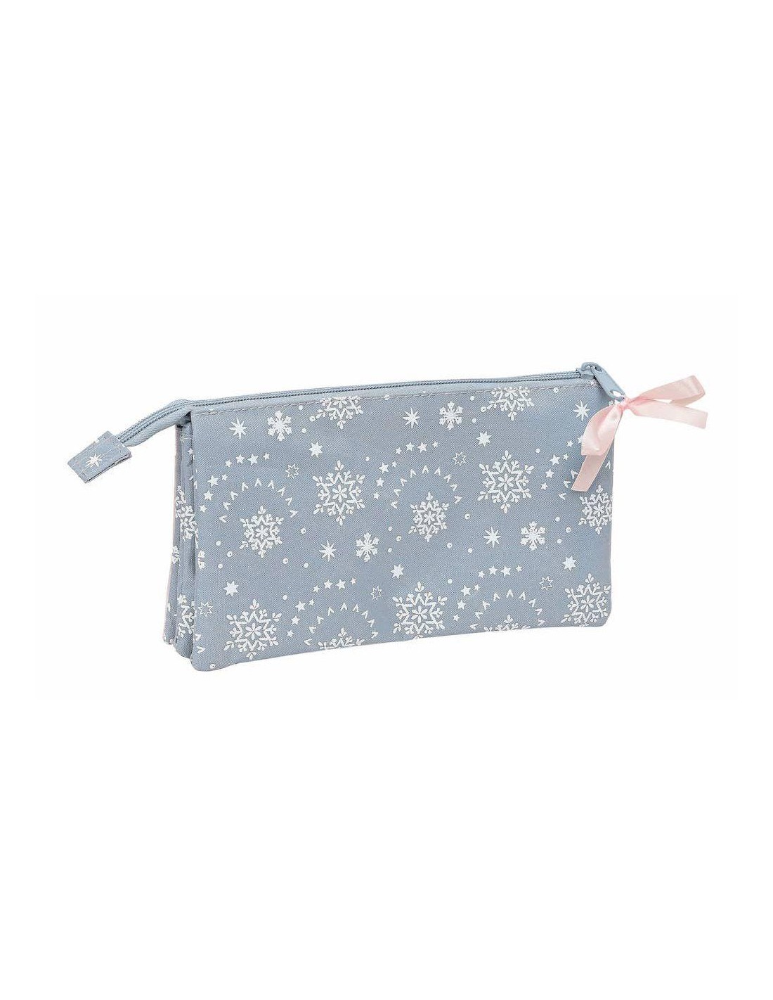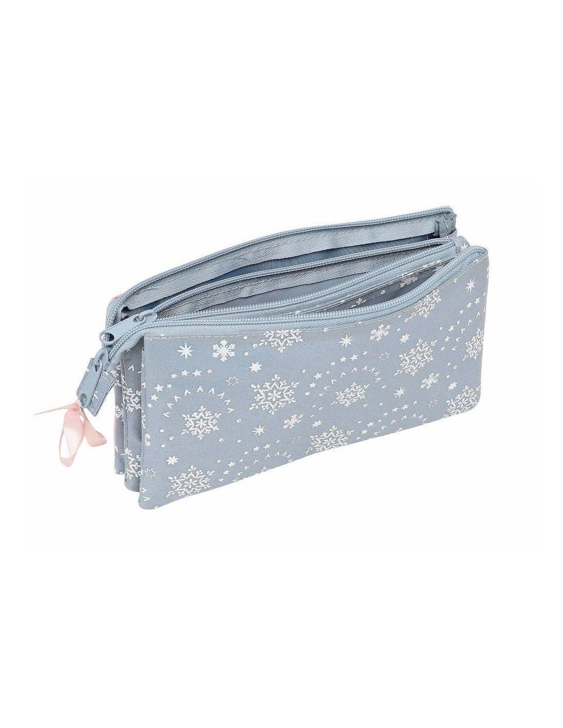 Tamaño: 22x12x3cm. Con 3 compartimentos separados con cremallera. Bolsillo interior central con cremallera.