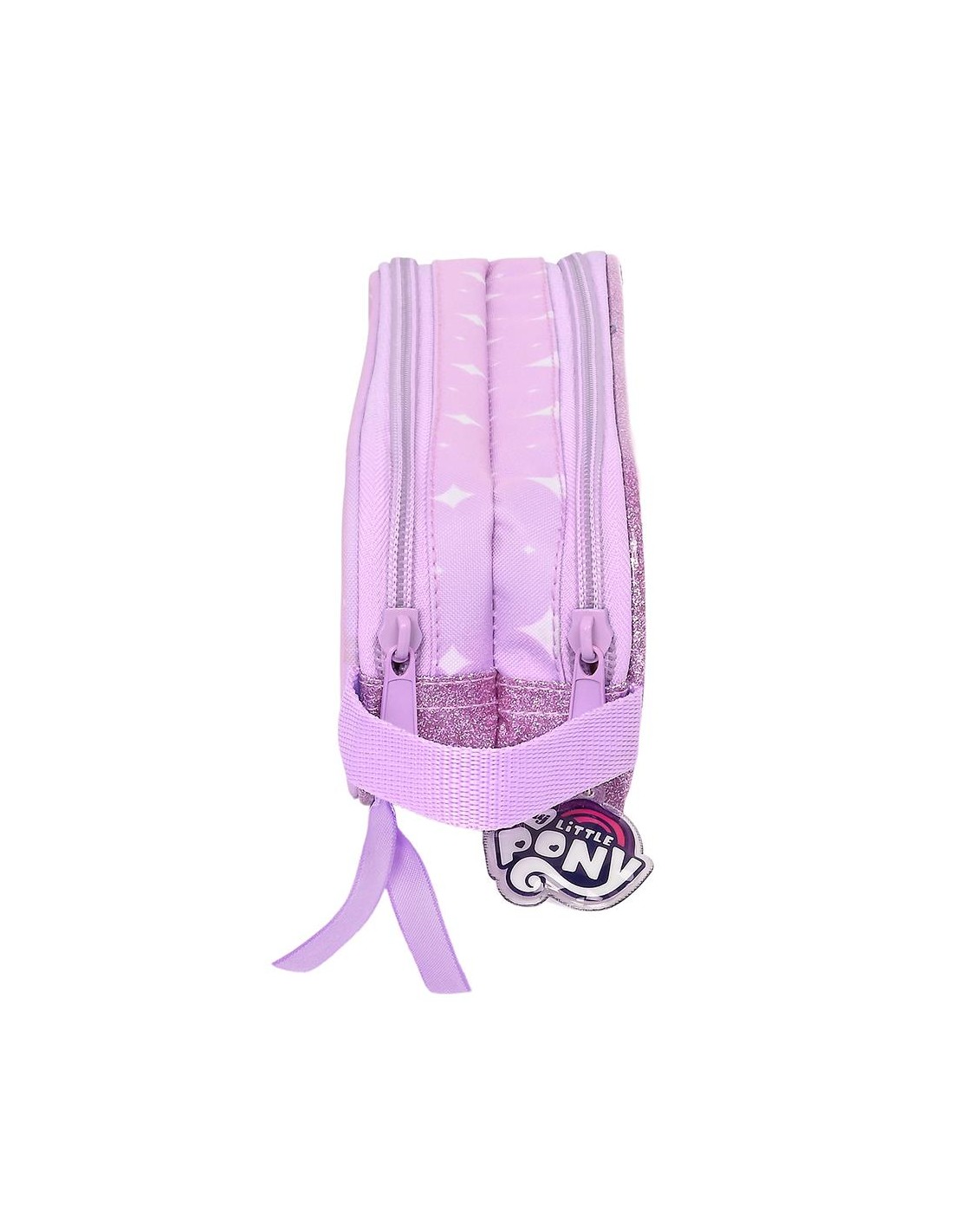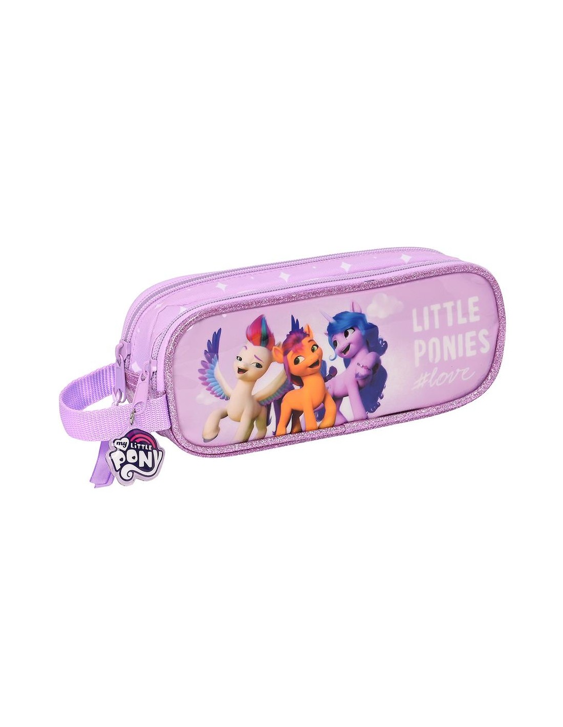 Dos compartimentos separados con cremalleras. Asa de mano en la parte lateral.
