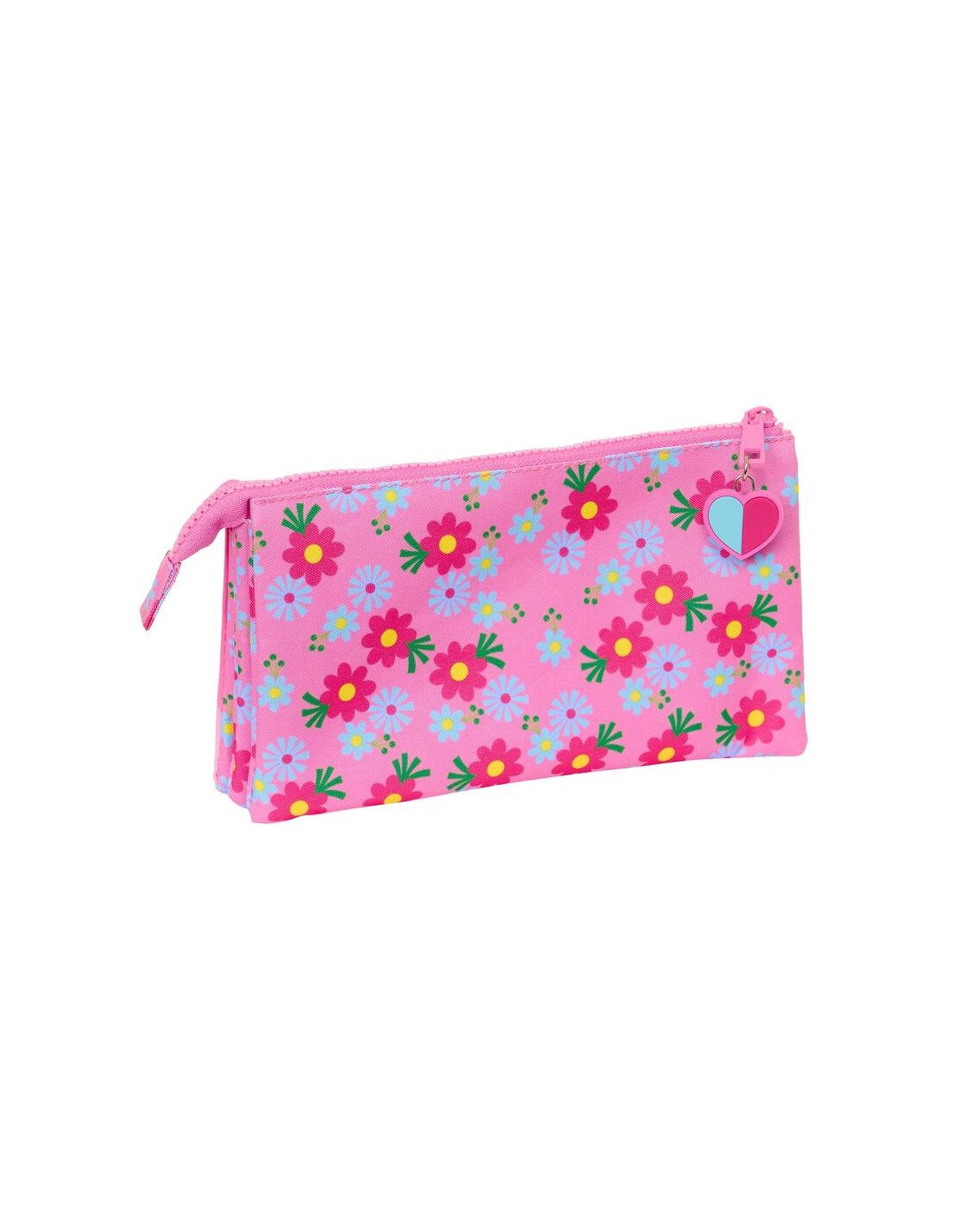 Tamaño: 22x3x12cm. Con 3 compartimentos separados con cremallera. Bolsillo interior central con cremallera.