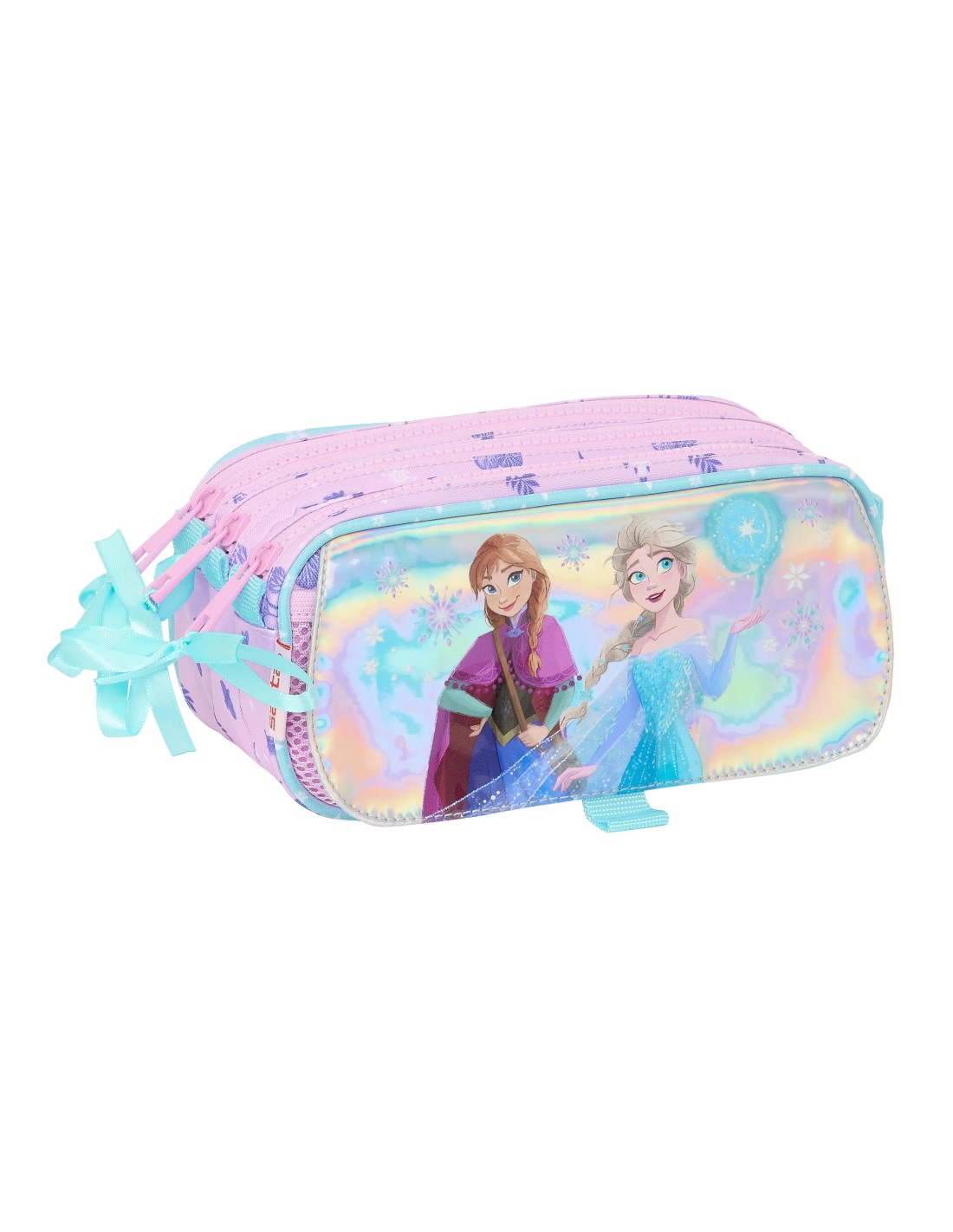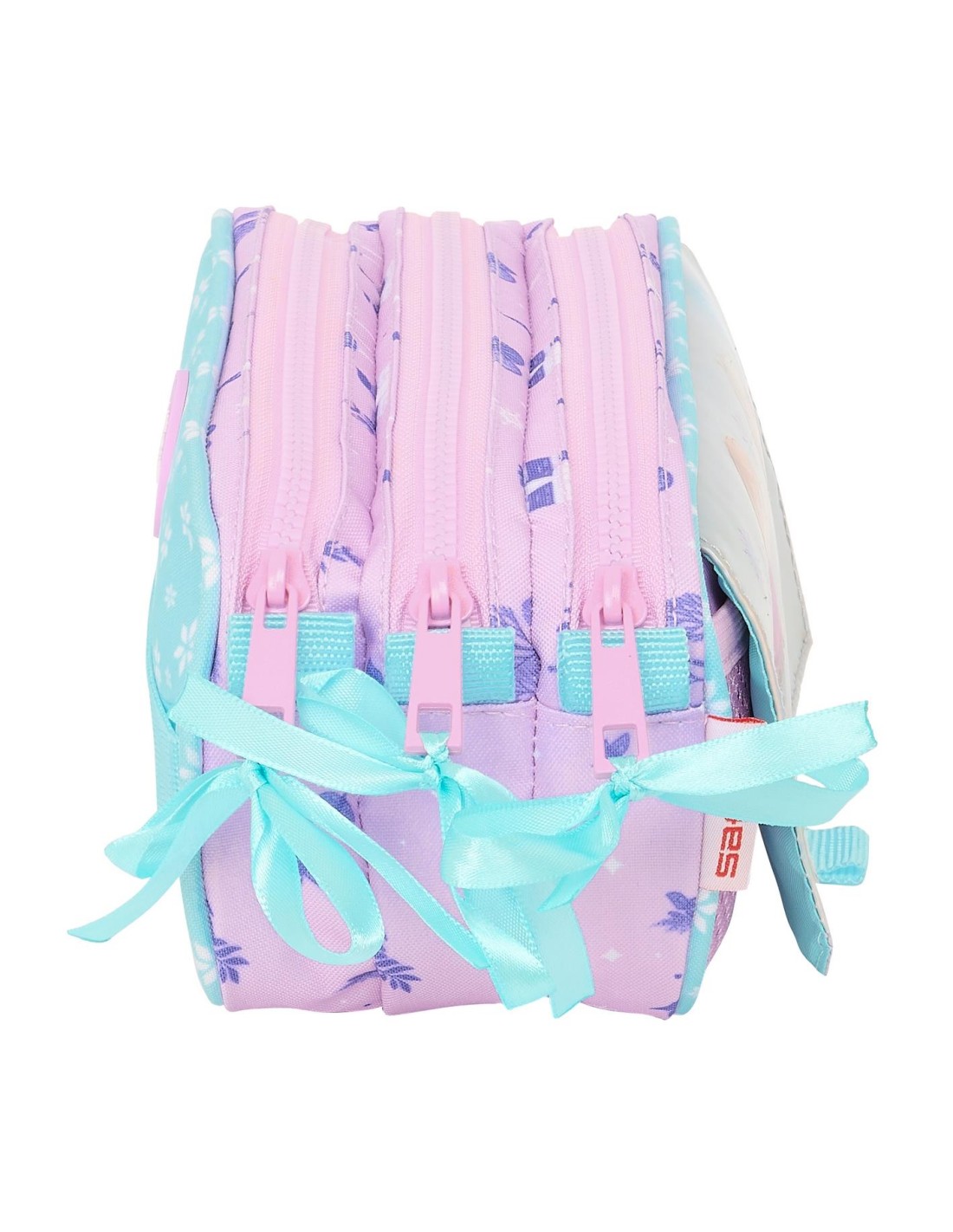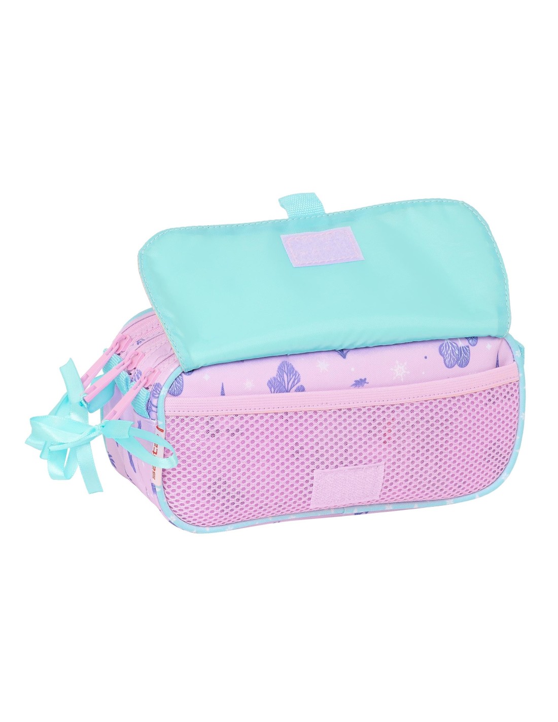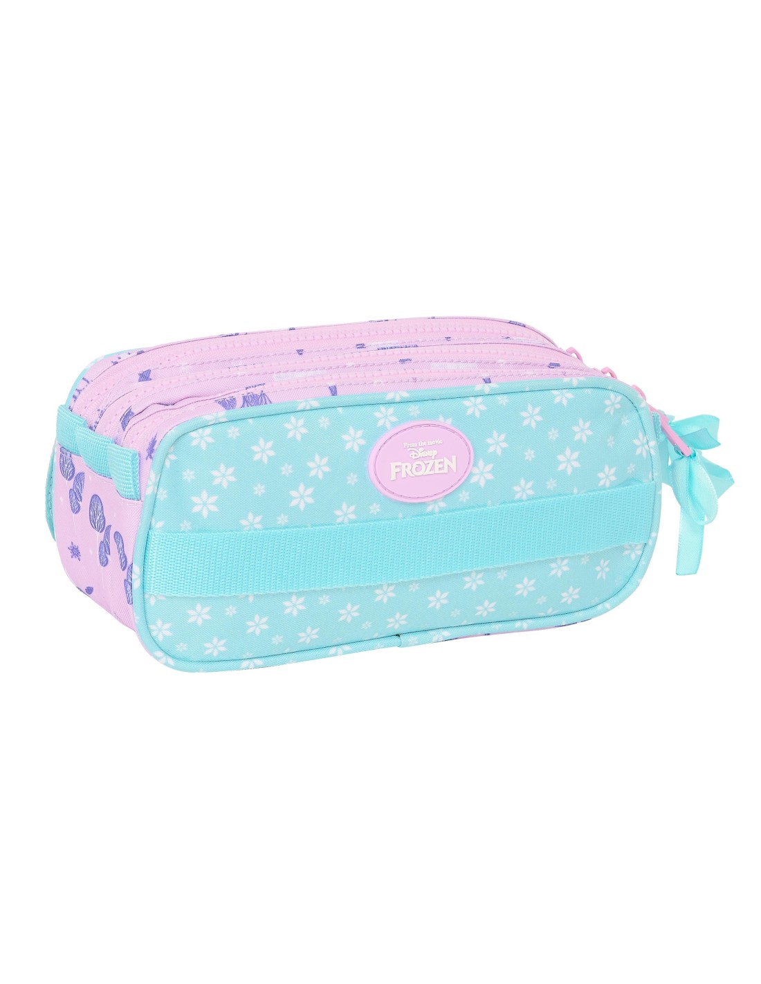 Tamaño: 21,5x8x10cm. Con tres compartimentos separados con cremalleras. Bolsillo frontal con cremallera. Cinta trasera adaptable a carro portamochilas.