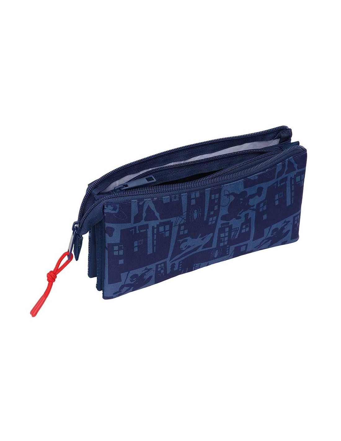 TAMAÑO 22x3x12 cm Con 3 compartimentos separados con cremallera. Bolsillo interior central con cremallera.