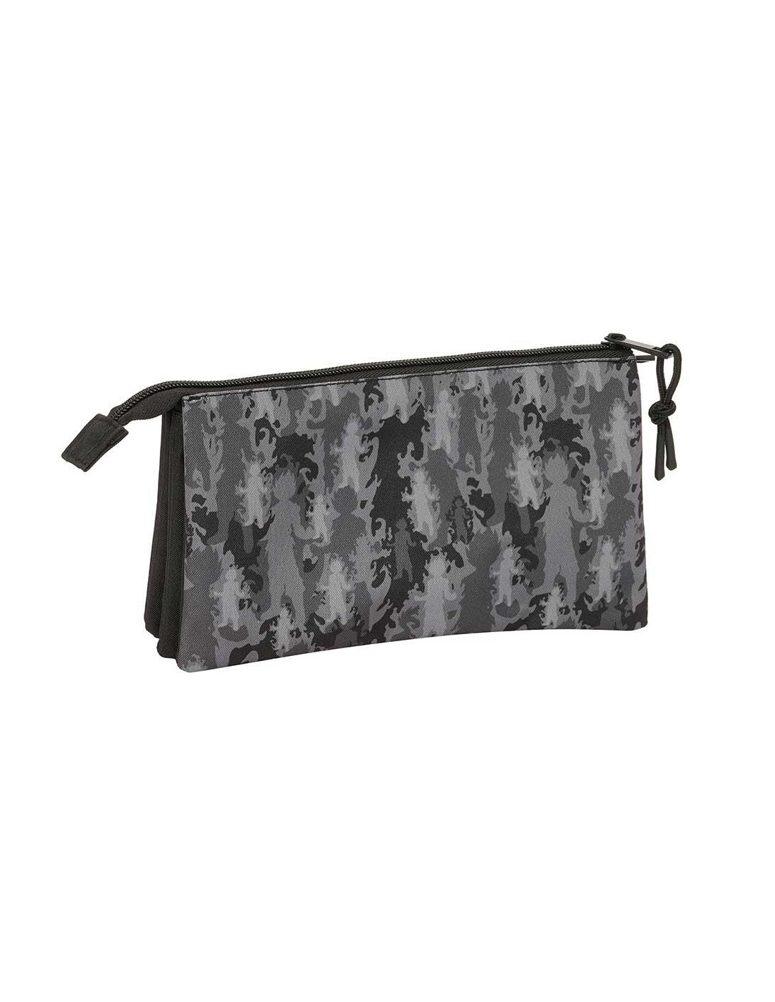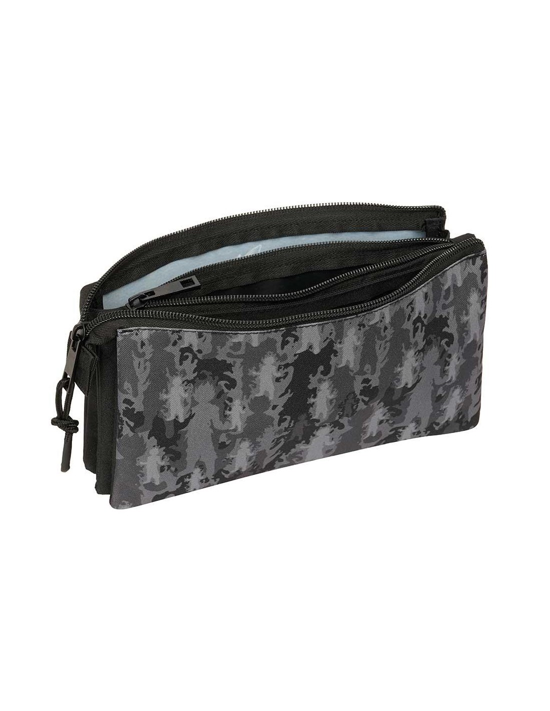 Tamaño: 22x3x12cm. Con 3 compartimentos separados con cremallera. Bolsillo interior central con cremallera.