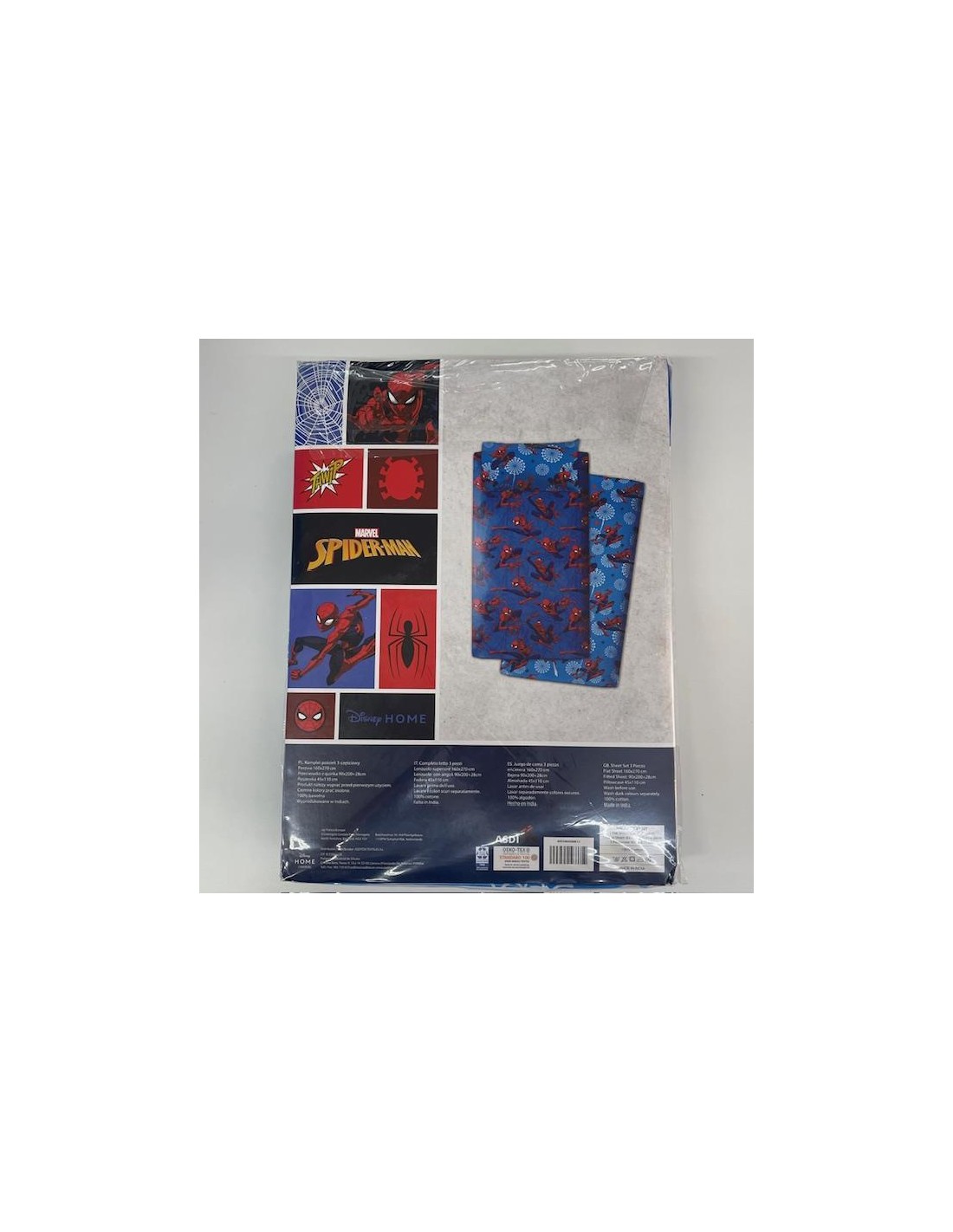 Composición 100% algodón. Juego de sábanas de 3 piezas. Incluye una sábana encimera de 160x270 cm, una sábana bajera de 90x200+28 cm, y una funda de almohada de 45x110 cm. 100% algodón. Producto con licencia oficial.