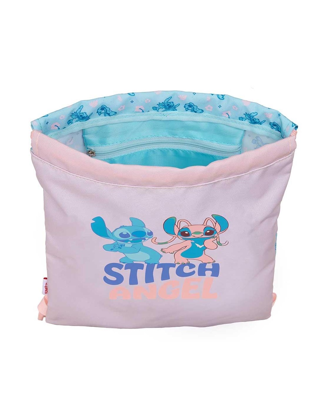 Tamaño: 26x34cm. Bolsillo interior con cremallera. Cierre de seguridad anti-estrangulamiento. Cierre mediante cordones.