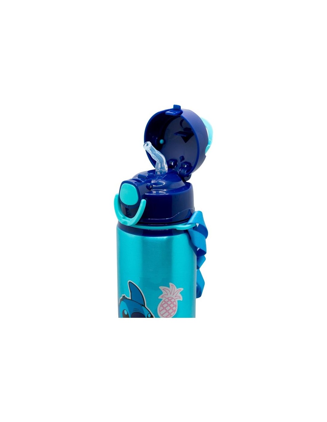 Botella de agua infantil de aluminio de 730 ml con correa, asa, tapón y pajita de Bluey Botella de agua reutilizable de aluminio, decorada con diseños basados en las principales licencias. Dispone de una práctica pajita para facilitar su uso y tiene tapón con botón que evitará derrames y salpicaduras accidentales. - Capacidad: 730 ml - Asa y correa para llevar la botella - Libre de BPA