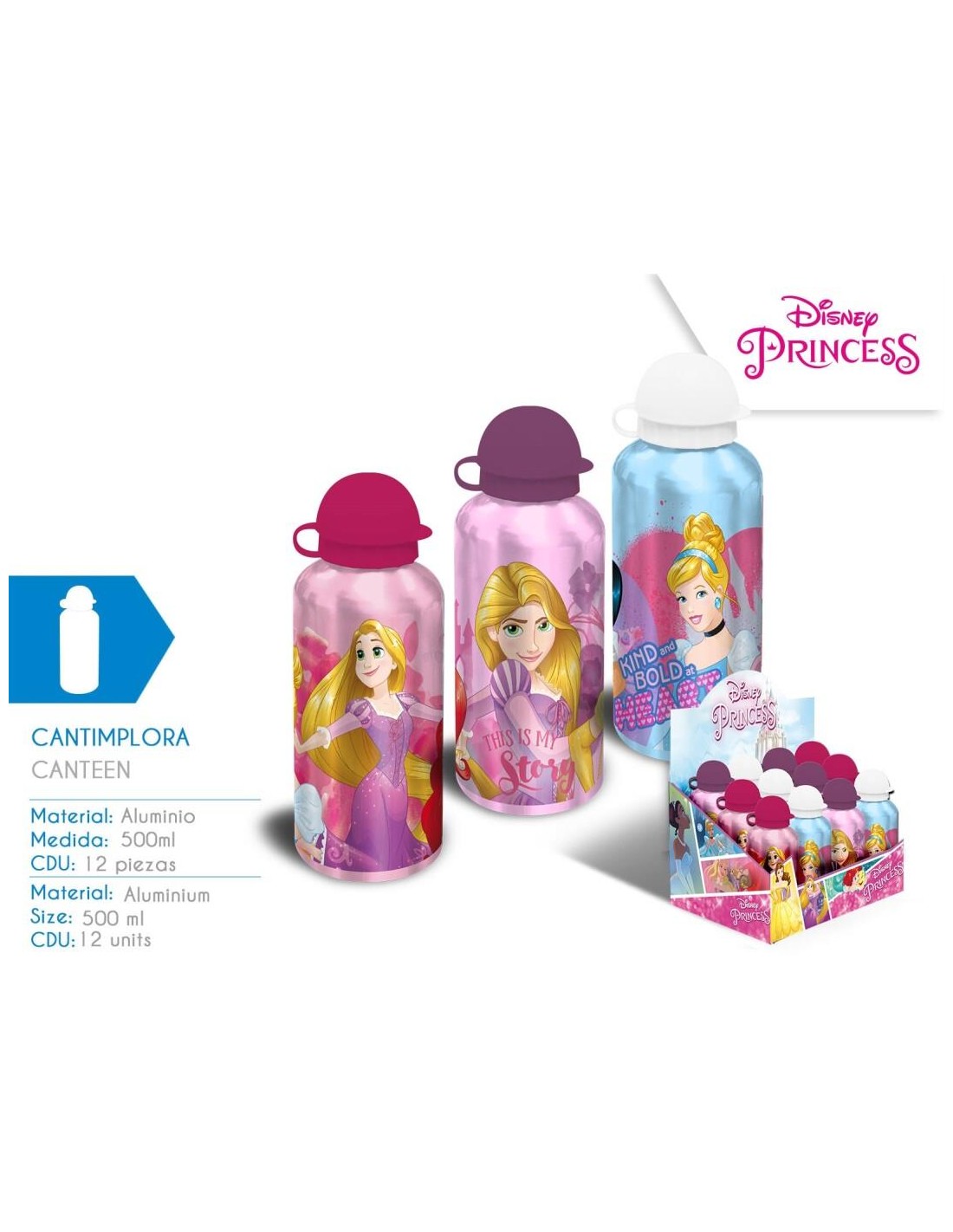 Cantimplora aluminio 500ml Princesas SURTIDA UNIDAD