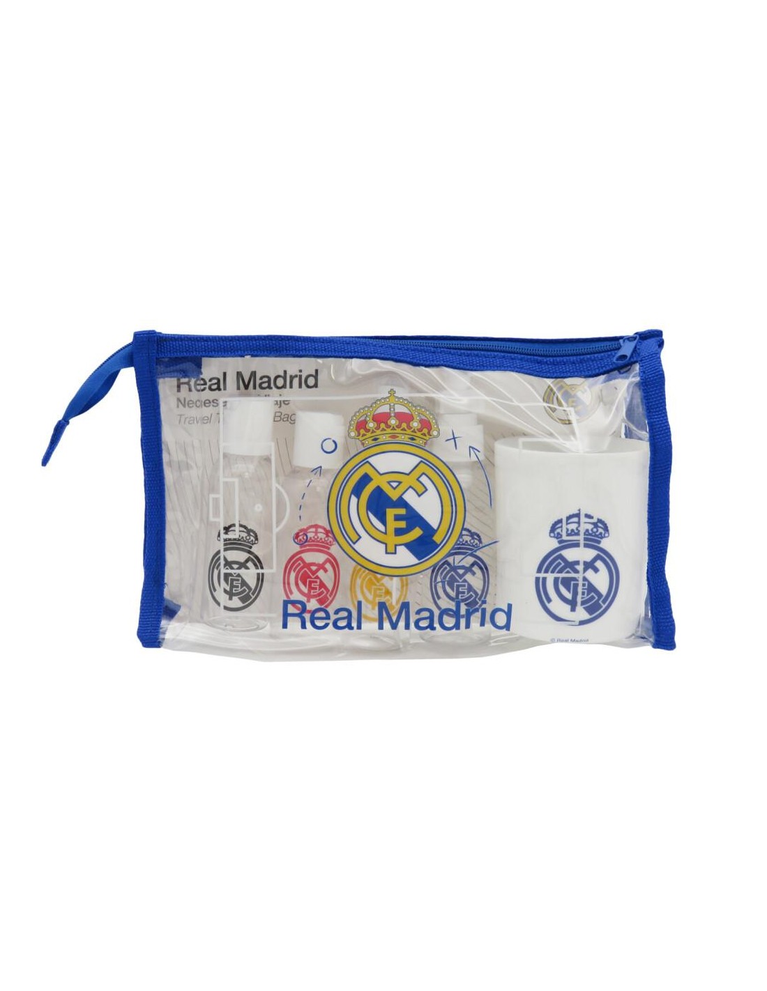 REAL MADRID: Neceser de viaje del Real Madrid CARACTERÍSTICAS: Neceser transparente de gran capacidad con el escudo del Real Madrid. Contiene Dispensador (100 ml.), Pulverizador (100 ml.), 2 botes (100ml) y un vaso con 200ml de capacidad, todo ello con el escudo de tu equipo en distintos colores. Es el neceser perfecto para que lleves todo lo que necesites a cualquier viaje.