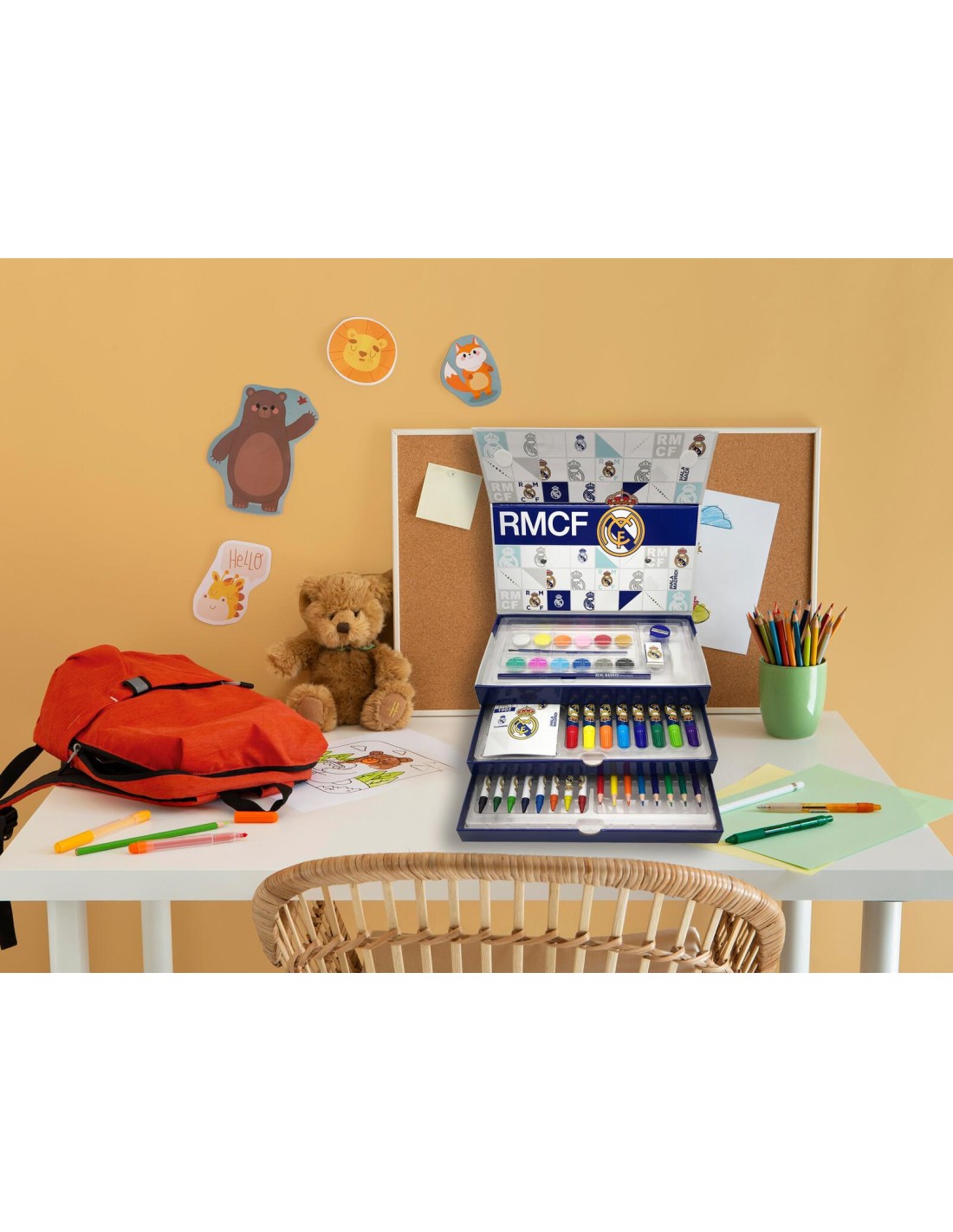 CARACTERÍSTICAS: Se compone de 52 piezas. 12 acuarelas, 1 pincel, 1 paleta, 1 goma, 1 sacapuntas, 1 esponja, 1 lápiz HB, 8 lápices de colores, 8 ceras de colores, 8 rotuladores, 1 bloc de dibujo y un maletín con cajones